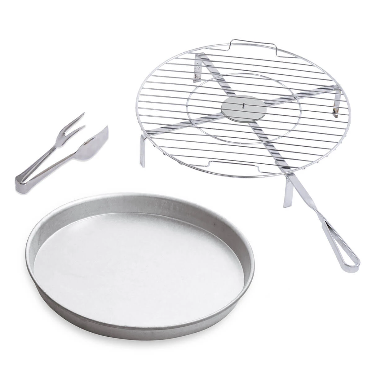 - Steel baking pan: it is designed for draining off fat during cooking and for holding embers.
