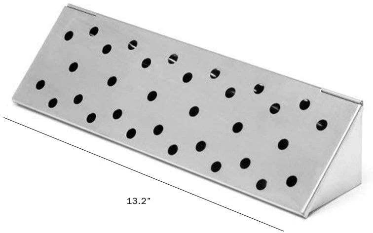 - V-shape fits between flame deflector bars on gas grills for the most intense smoke flavor