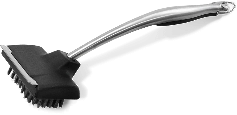 Use the Napoleon PRO Series Stainless Steel Grill Brush to keep your grill’s stainless steel cooking girds clean. A clean grill is a happy grill. You should brush the stuck on foods from your grill with a grill brush after every time you grill, while the grill is still hot, and again before grilling your next meal. The stainless steel bristles on the Stainless Steel Grill Brush will not damage your stainless steel cooking grids but will last a long time. This Brush matches the rest of the PRO Series grilling tools. The Stainless Steel Grill Brush is 18 inches long with a rubberized grip on its ergonomic handle, giving you easy leverage for getting at that tough stuck on food, and has a metal scraper on the head for particularly tough spots. The Grill Brush features a hanger for easy storage. When the head finally does wear out, instead of buying a completely new one, Napoleon has replacement heads. Keep your grill clean with the Napoleon PRO Series Stainless Steel Grill Brush.