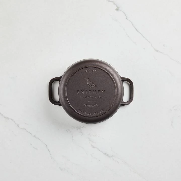 Inspired by the best of vintage cast iron design, this new 3.5 qt dutch oven is designed to be a timeless classic that will find an everyday place on your stovetop. Great for everything from soups and stews to braised meats, baked casseroles, cast iron bread, fried favorites, and so much more. Featuring the only fully polished cast iron interior on the market today, this dutch oven is naturally non-stick and easy to clean and will never stain or chip – in fact, the interior surface will only get better with use. Engineered to maintain even, consistent heat, this dutch oven is perfect for main courses for 2-4 people as well as sides of every variety. Made in the U.S.A. and guaranteed for life – the Smithey 3.5 qt dutch oven is for the cook who values craftsmanship and performance and wants to stand out from the pack. Use it well.
